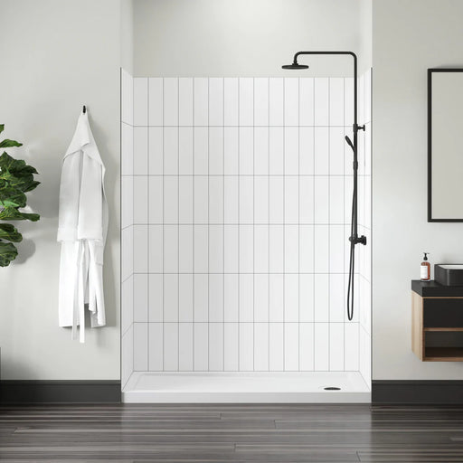 Craft + Main Jetcoat Core Vertical White Subway 5 Piece Glue Up Composite Shower Wall - 60" x 32" x 78"